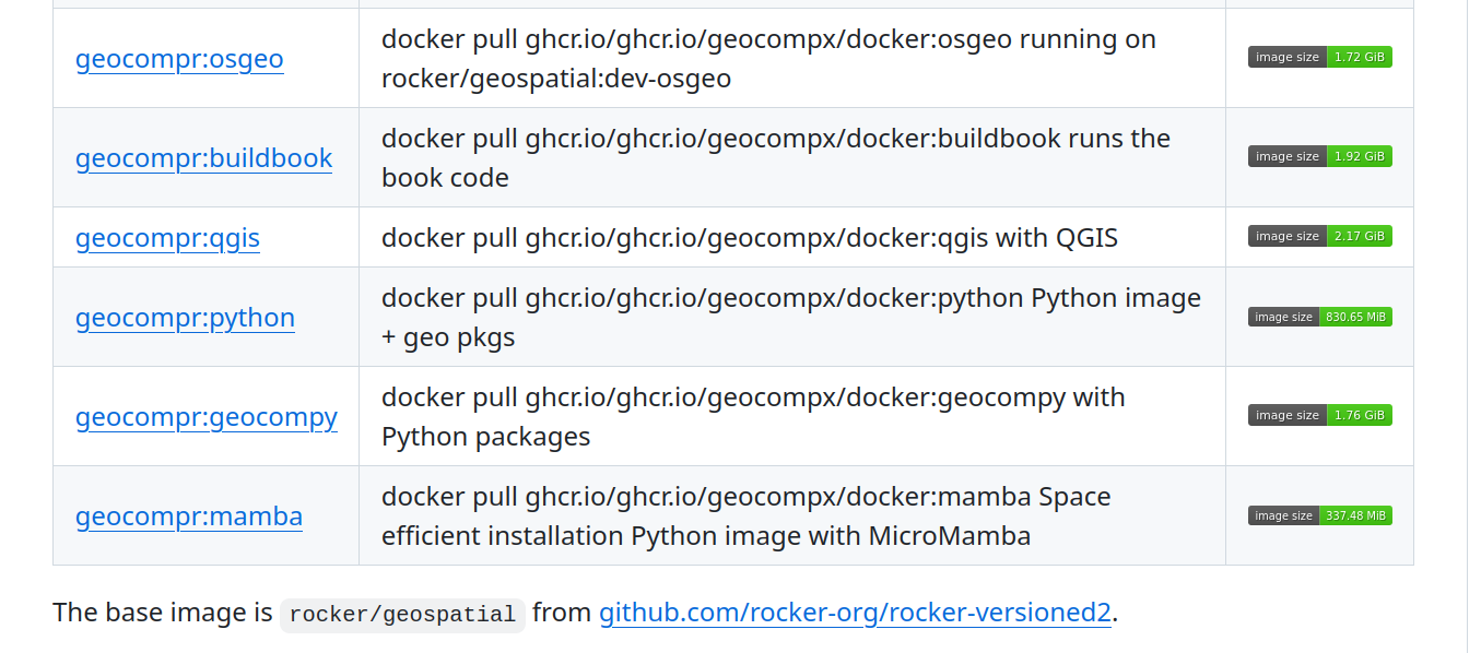 | R | Python | Jupyter Hub | Jupyter Lab | code‑server (Code) | RStudio | Neovim | Git | Git LFS | Pandoc | CRAN date | Linux distro |
